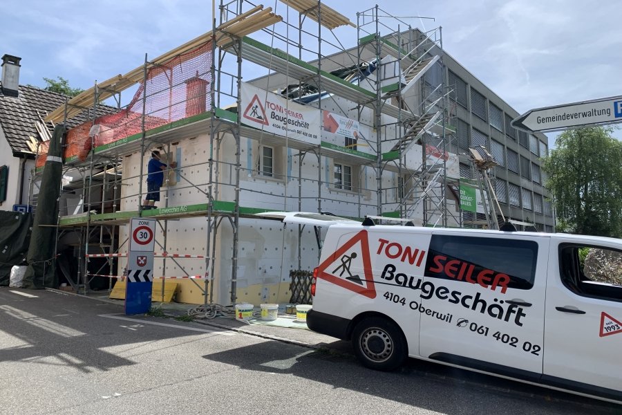 Hier wurde die bestehende alte Fassade komplett gedämmt. Die Bauherrschaft kommt in den Genuss von Förderbeiträgen und benötigt in Zukunft erheblich weniger Heizenergie.