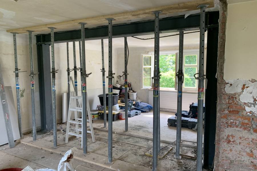 Bestehende Wand abgebrochen und durch einene Stahlbau ersetzt.
